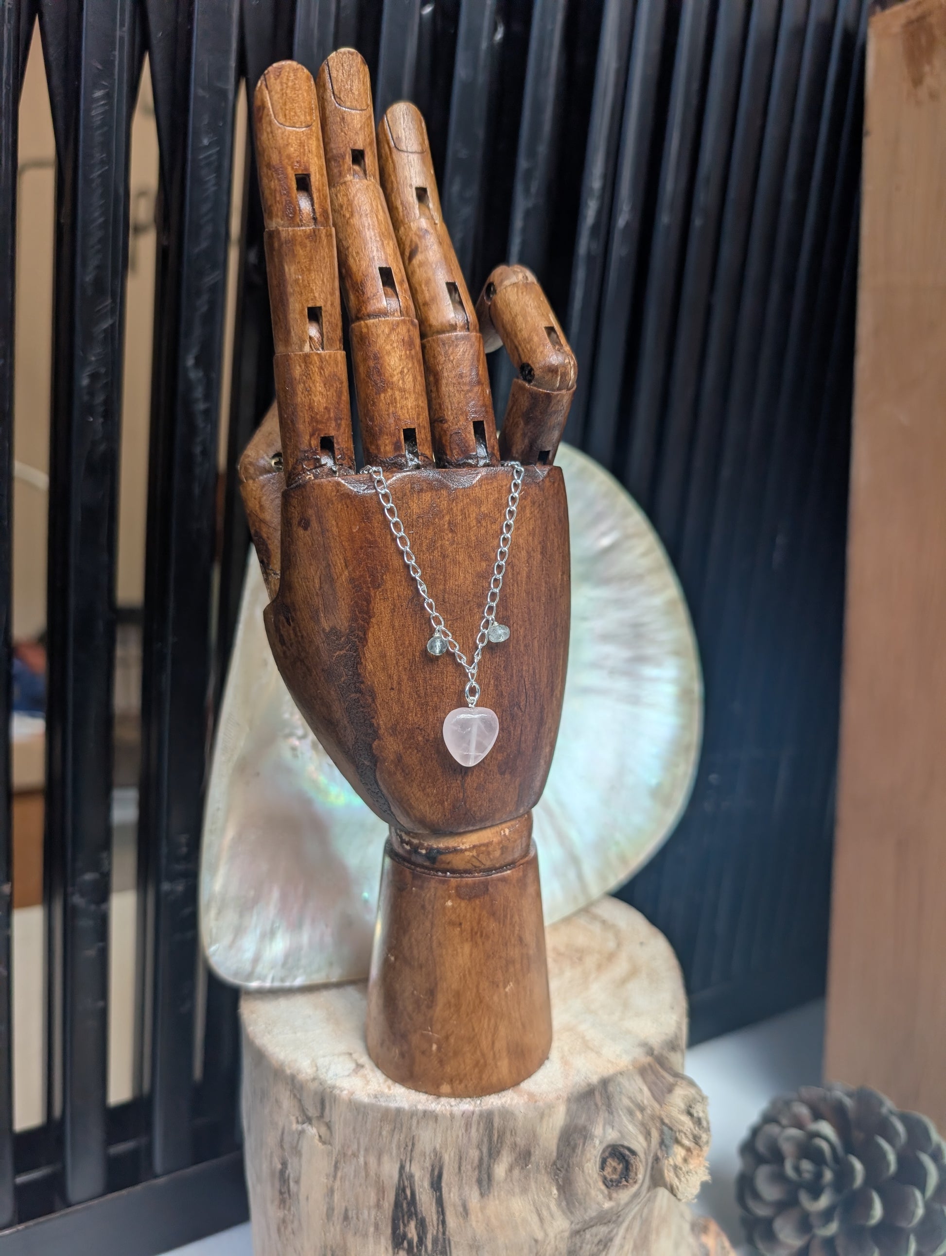 Dainty 2mm rose quartz heart with hand wrapped moss agate beads on sterling silver 10inch adjustable bracelet chain