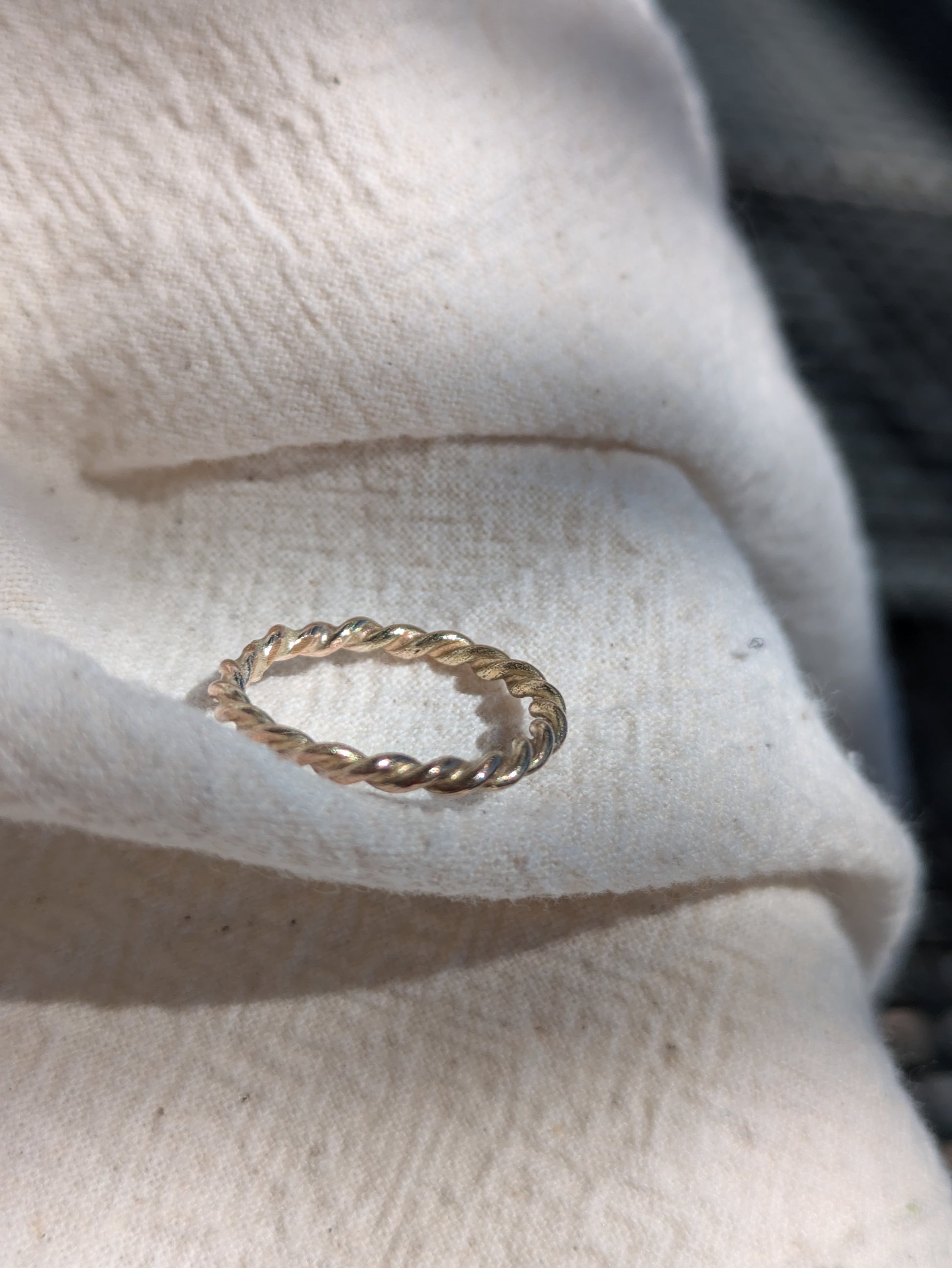 Beautiful twisted gold ring inspired by Welsh Love Spoons.